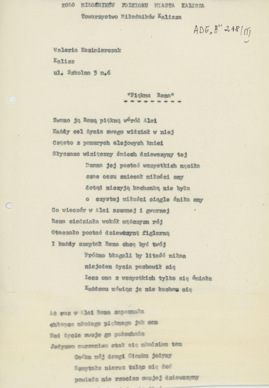 - dziewczyna, Koło Miłośników Folkloru Miasta Kalisza, miłość, Kaźmierczak Waleria, opowieść